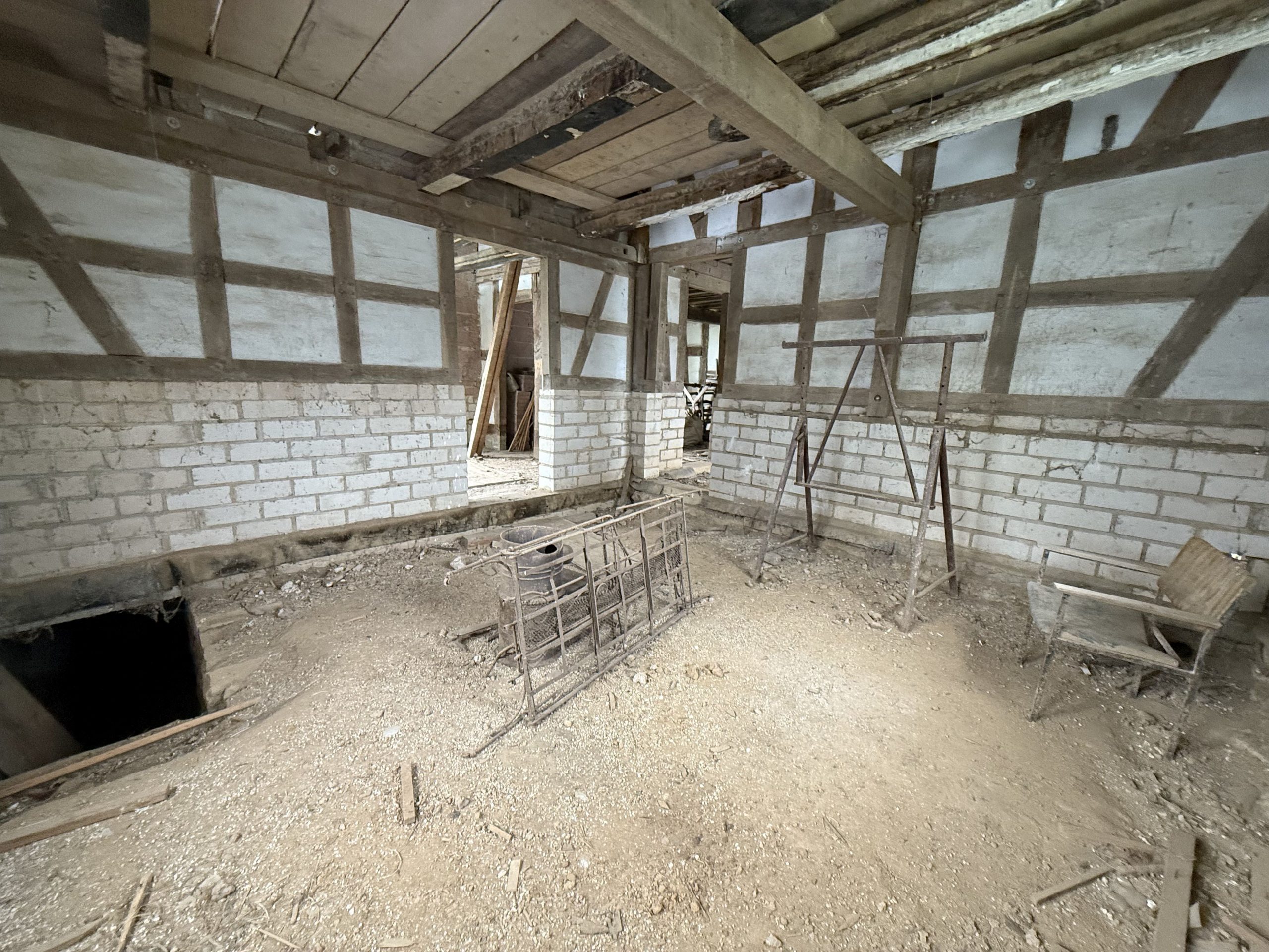 In Traumaussichtslage befindet sich dieses sehr interessante und als Liebhaberobjekt zu bezeichnende ca. 300 Jahre alte Fachwerkhaus. Es wurde total entkernt. Auch ein großer Teil der Außenfassade ist erneuert. Durch fachmännisch, zimmermannsmäßiges Ertüchtigen der Fachkonstruktion wurde der Charakter des im Kern bis ins frühe mittlere 18. Jahrhundert zurückgehenden Gebäudes bewahrt und eine Raumstruktur geschaffen, die nur noch auf den Innenausbau wartet, dafür aber einem besonderen Wohncharakter Rechnung trägt. Im Innenbereich wurde die alte Fachwerksubstanz erhalten. Vorgesehen, bzw. geplant sind 2 Wohnungen. Die Immobilie kann jedoch auch als großzügiges Einfamilienwohnhaus fertiggestellt werden. Für das Dachgeschoss besteht die Möglichkeit, als großzügiges Atelier mit wunderschöner Weitsicht hergerichtet zu werden.